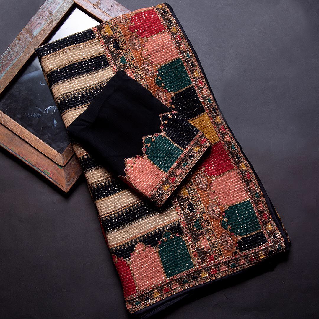 DESCRIPTION:- For evening cocktail and dinner party, this saree will be the showstopper everywhere. Easier to drape and carry, without compromising on the style quotient. With its diverse palette, it is bound to set inspirational fashion standards.