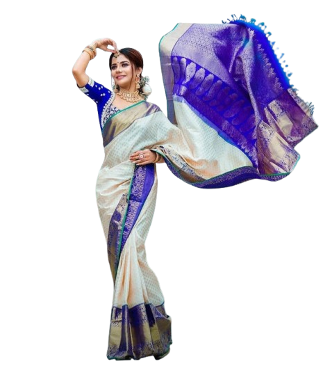 The Silk Women’s Gorgeous White with Blue color Soft Silk Party Wear Saree with 0.80 m Attached blouse