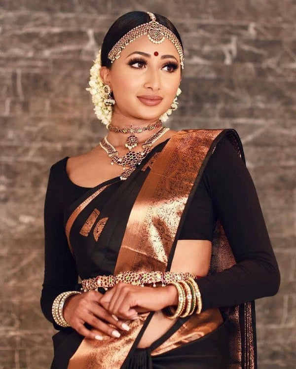 The Silk Women’s Shiny Sapphir Soft Silk Desginer Banarasi Saree with 0.80 m Attached Blouse